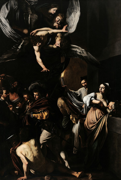 Caravaggio a exprimat în mod viu momente și scene cruciale, prezentând adesea lupte violente, tortură și moarte. A renunțat la desene si schite pentru a-si pregati tablourile si a preferat să lucreze direct pe pânză.
